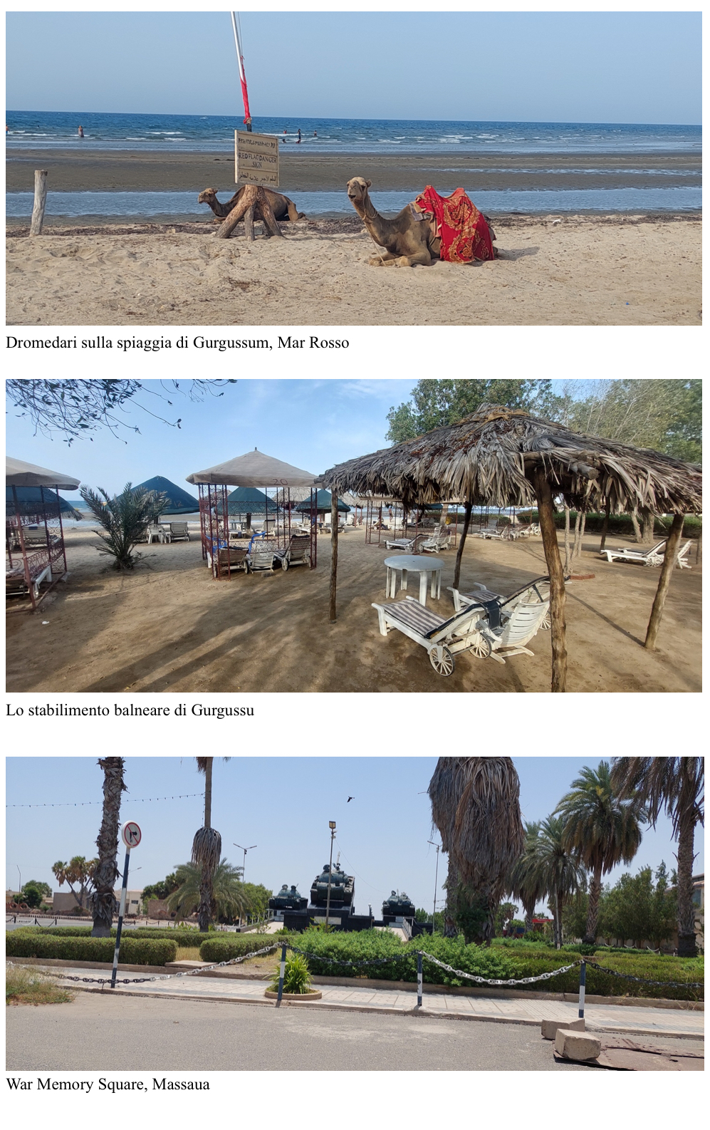 Ci avviamo alle camere, notiamo con sollievo che tutte e tre sono dotate di ventilatore a soffitto e condizionatore. Decidiamo le sistemazioni, ci infiliamo il costume e ci lanciamo in spiaggia, per rinfrescarci nelle acque del Mar Rosso.