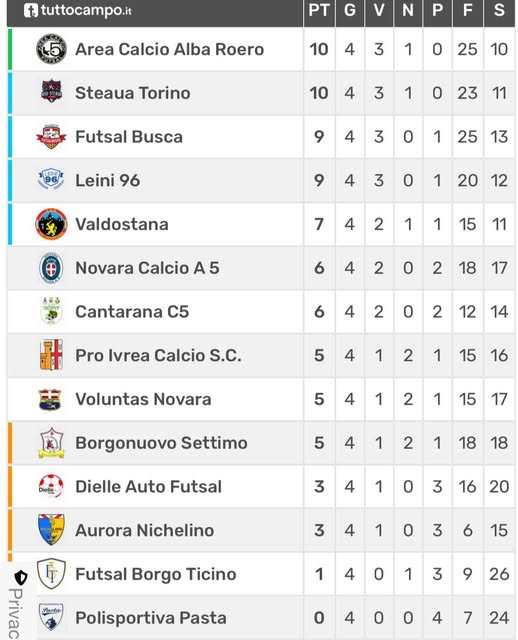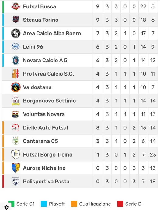 Il Borgonuovo si è imposto in trasferta contro il Busca con un netto 11 a 4, mentre il Dielle ha travolto la Pro Ivrea per 7 a 2. L’unica a non perdere terreno, riscattando lo stop della scorsa giornata, è lo Steaua, vittorioso per 5 a 1 sulla Valdostana.